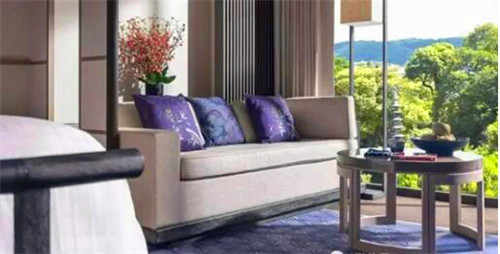 京都四季酒店共有110間客房,客房內(nèi)洋溢著寧靜私密的氛圍,設計上體現(xiàn)出傳統(tǒng)和室的特色。日光在簡譜的木地板上投下鮮明的影子,屏風上也繪著當?shù)厮囆g(shù)家的作品。還有以明亮的紫色為主調(diào),采用天然橡木地板的客房設計,盡顯皇室風范。多數(shù)房間可以擁有日本庭院的室外風景,陽光穿透樹枝從落地窗灑進房內(nèi),水光粼粼的庭院更一覽無遺。HBA新加坡設計團隊還巧妙地將池泉園、妙法寺及周邊的美景納入房間窗景中。透過窗戶便是一副四季如畫的風景線。
