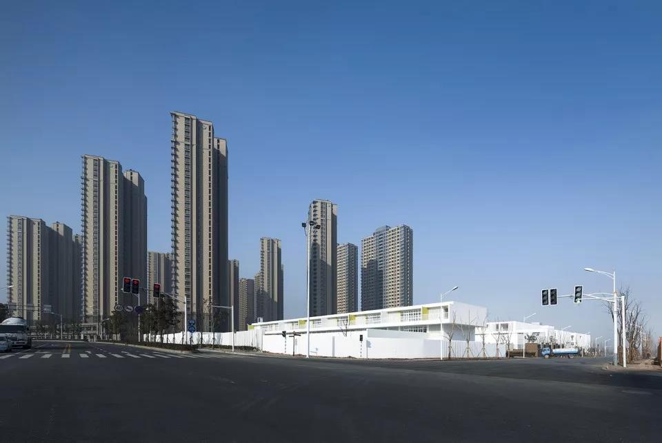方案試圖盡量降低建筑體量,希望把幼兒園體量盡量做得低矮,看上去是兩層或者一層的樣子。