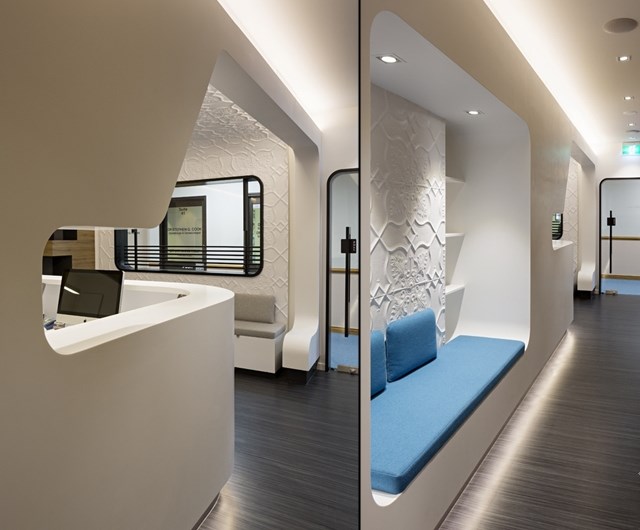 創(chuàng)造一個可估計的雕塑來讓人進行嘗試,這樣會給顧客和路人留下印象。旁邊的咨詢室就是要保持理性,就是要改造成和皮膚后的骨架一樣的。將病人和他們的經(jīng)驗作為優(yōu)先考慮的情況,該項目就是要創(chuàng)造超越行政以及醫(yī)療程序的實踐的醫(yī)治環(huán)境。
