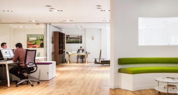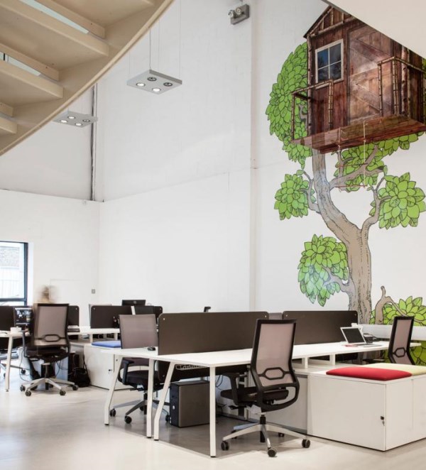 接待區(qū)中心的裝飾樹(shù)像是邀請(qǐng)顧客到藍(lán)沙發(fā)上來(lái)休息,想象一下在這個(gè)創(chuàng)造力十足的空間工作吧!通過(guò)一些細(xì)節(jié)鼓勵(lì)創(chuàng)造力和合作,能夠填補(bǔ)員工之間的間隙。