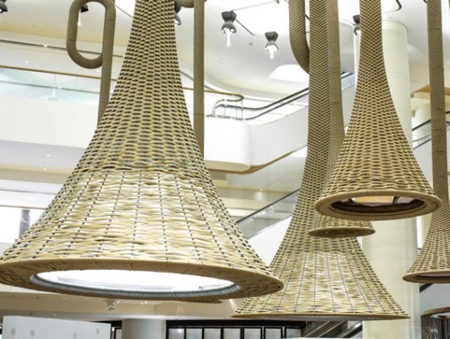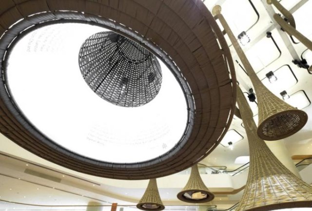 “this is OUR place”以懸掛在中庭天花板上的成對的大型音樂號角為特征,懸在空中的樂器是由柳條編織而成,與青銅金屬表面形成溫暖的氣氛。裝上多媒體之后,人們還能沉浸在3個大號角的360°全景下。