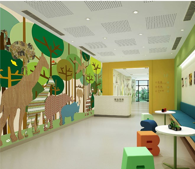 孩子們對大自然有一種特殊的情感,充滿了熱愛與好奇。設(shè)計師在兒童科室運(yùn)用墻繪、造型、空間色彩為孩子們打造出一個大自然的場景。
