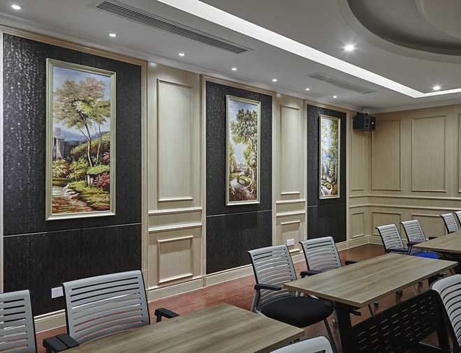 二層用整體白色木飾面墻面做設(shè)計(jì)構(gòu)思,在大面積白色調(diào)的運(yùn)用下彰顯清新格調(diào)和簡潔大方,極具醫(yī)院特色,又不缺味道與個(gè)性。曲折蜿蜒的走廊里,鏡面與油畫結(jié)合的墻面、大塊玻璃的運(yùn)用,使得原本枯燥的走廊增添一份空間感。三層VIP客戶層,強(qiáng)調(diào)私密與品位,用深色木色系墻面處理整個(gè)空間關(guān)系,與之定位相關(guān)聯(lián)。四層手術(shù)層,強(qiáng)調(diào)空間的溫馨.用暖色調(diào)的空間氛圍來削除手術(shù)功能帶來的緊張度。