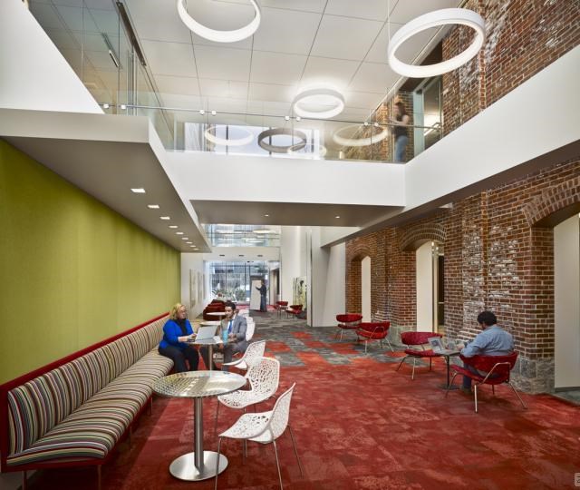 研究和開發(fā)團隊位于相鄰的建筑中,行政大樓位于校園外部環(huán)線中,食堂、餐廳、會議中心和各種培訓(xùn)大樓位于中心,以便實現(xiàn)內(nèi)部組織和部門之間的合作。