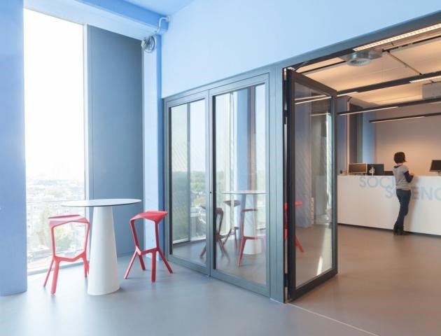 阿姆斯特丹大學(xué)社會(huì)和行為科學(xué)學(xué)院邀請(qǐng)F(tuán)okkema & Partners為他們的新校區(qū)做做室內(nèi)設(shè)計(jì)。這個(gè)新校區(qū)是在戰(zhàn)后由倫敦的AHMM公司負(fù)責(zé)重新改建的,該公司在重建時(shí)給這個(gè)校區(qū)定下的基調(diào)是:根據(jù)專業(yè)不同,分別用藍(lán)灰色、黃色和白色作為主色。