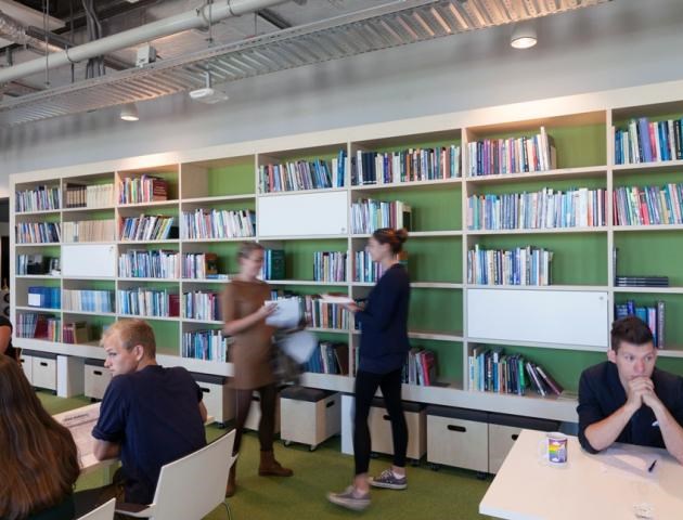 此外,設(shè)計(jì)師還特意加入了其他有特點(diǎn)的各種元素,比如,在會(huì)議室和常用的房間都設(shè)置了柜子,從而打造出這個(gè)獨(dú)特的工作學(xué)習(xí)環(huán)境。