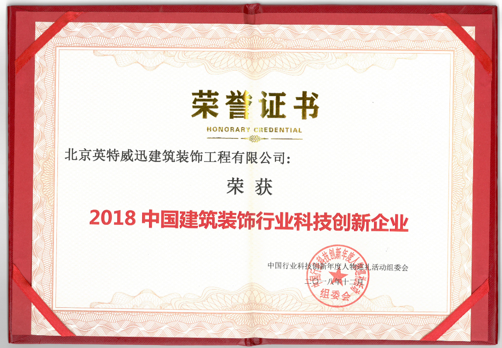 英特威迅公司榮獲建筑裝飾行業(yè)科技創(chuàng)新企業(yè)。