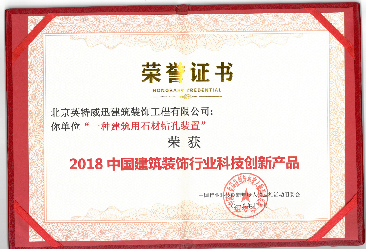 英特威迅公司專(zhuān)利榮獲建筑裝飾行業(yè)科技創(chuàng)新產(chǎn)品。